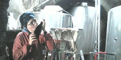 Charlotte Allen of Bodega Almaroja is an English expat living in the village of Fermoselle, the "Wild West" of Spain, where she's known as Carlota the Francesa. She makes her wines from 75+ year old organic vineyards, cofermenting these field blends, which contain up to 16 different red and white varietals that few have heard of. Her average yield is 10 hectoliters per hectare (about a half ton per acre--very little). She produces her wines in her 500 year old cellar, carved 100 feet into solid granite, which she believes was initially used during the crusades for Jewish converts to safely conduct religious services.